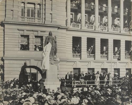 Here's a picture of the day the statue of Queen Victoria was unveiled.